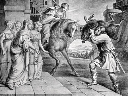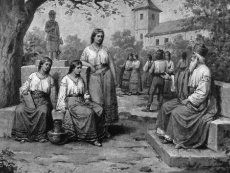 Jak se sem dostanete: Jděte od hradeb parkem směrem dovnitř areálu Vyšehradu. Po pár krocích uvidíte prostranství se čtyřmi mohutnými sousošími inspirovanými pověstmi - Přemysl a Libuše, Lumír a píseň, Záboj a Slavoj, Ctirad a Šárka. Autorem původních soch je Josef Václav Myslbek. Sochy původně stávaly u Palackého mostu.